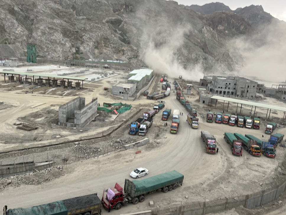 راحت نے بتایا: ’نیشنل لاجسٹک سیل نے یہ سڑک بنائی ہے اور یہ بارڈر ٹرمینل منصوبے کا حصہ ہے، جس پر کام جاری ہے۔ یہ مال بردار کنٹینرز اسی پہاڑ کے ساتھ سڑک پر کھڑے افغانستان جانے کا انتظار کر رہے تھے۔‘