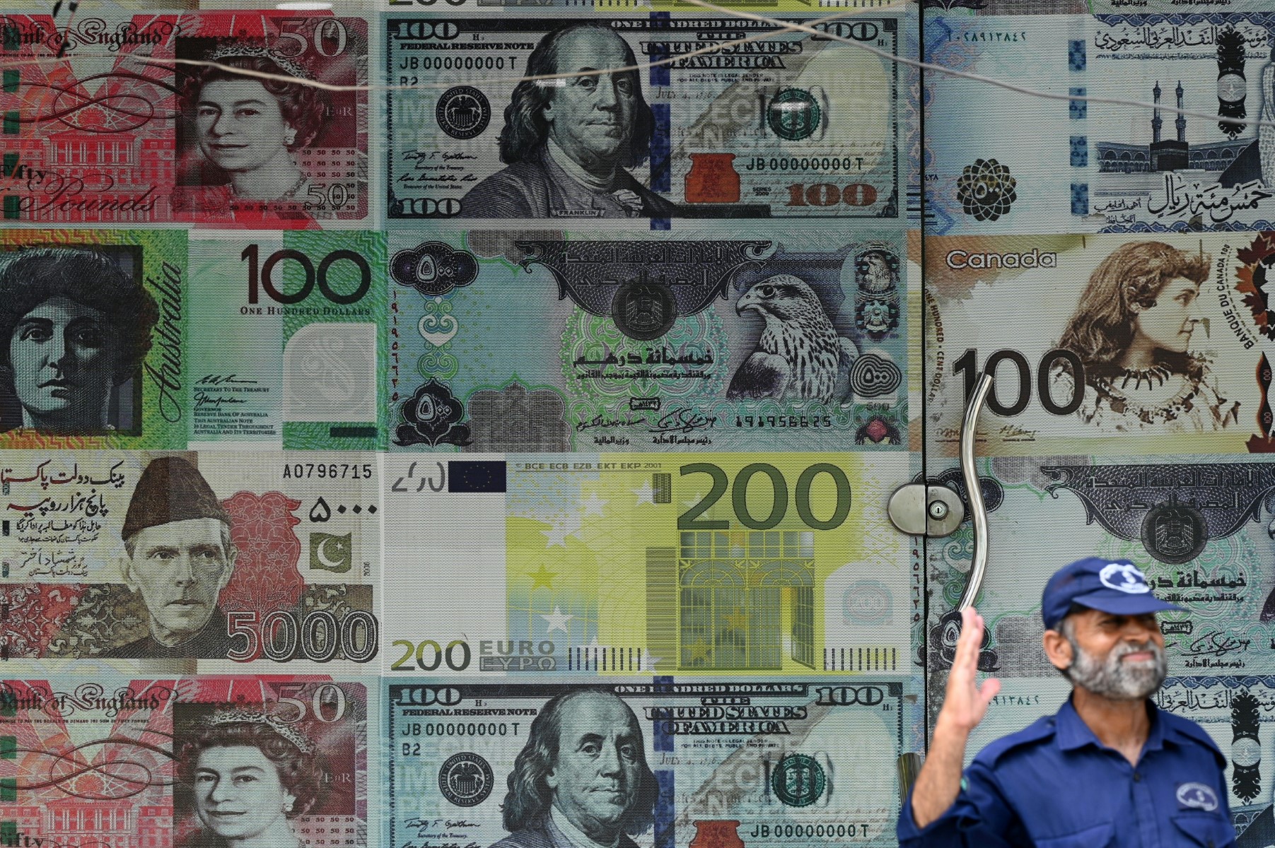 <p class="rteright">راولپنڈی میں ایک سکیورٹی گارڈ 15 جولائی 2023 کو منی چینجر کی دکان کے باہر کھڑا ہے (اے ایف پی)</p>