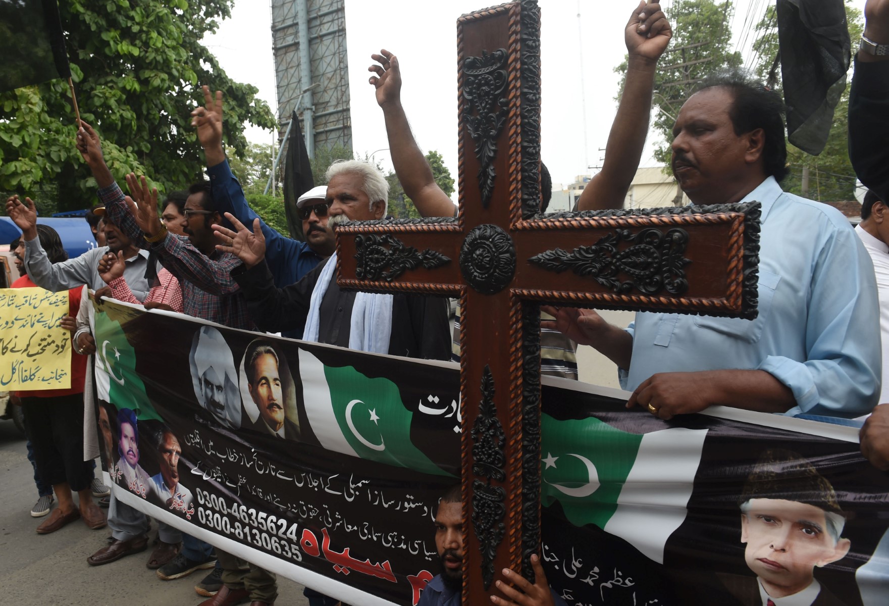 <p>11 اگست 2018 کو لاہور میں مسیحی برادری کے افراد اقلیتوں کے دن پر مارچ کر رہے ہیں(اے ایف پی/عارف علی)</p>