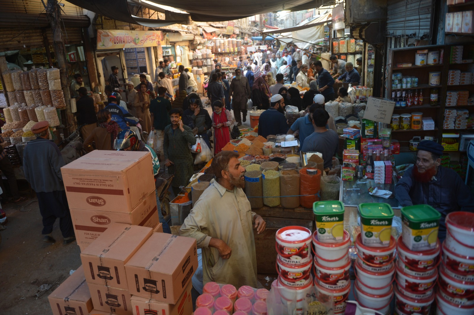 <p>فروری 2023 میں کراچی کے بازار میں لوگ خریداری کر رہے ہیں(اے ایف پی)</p>
