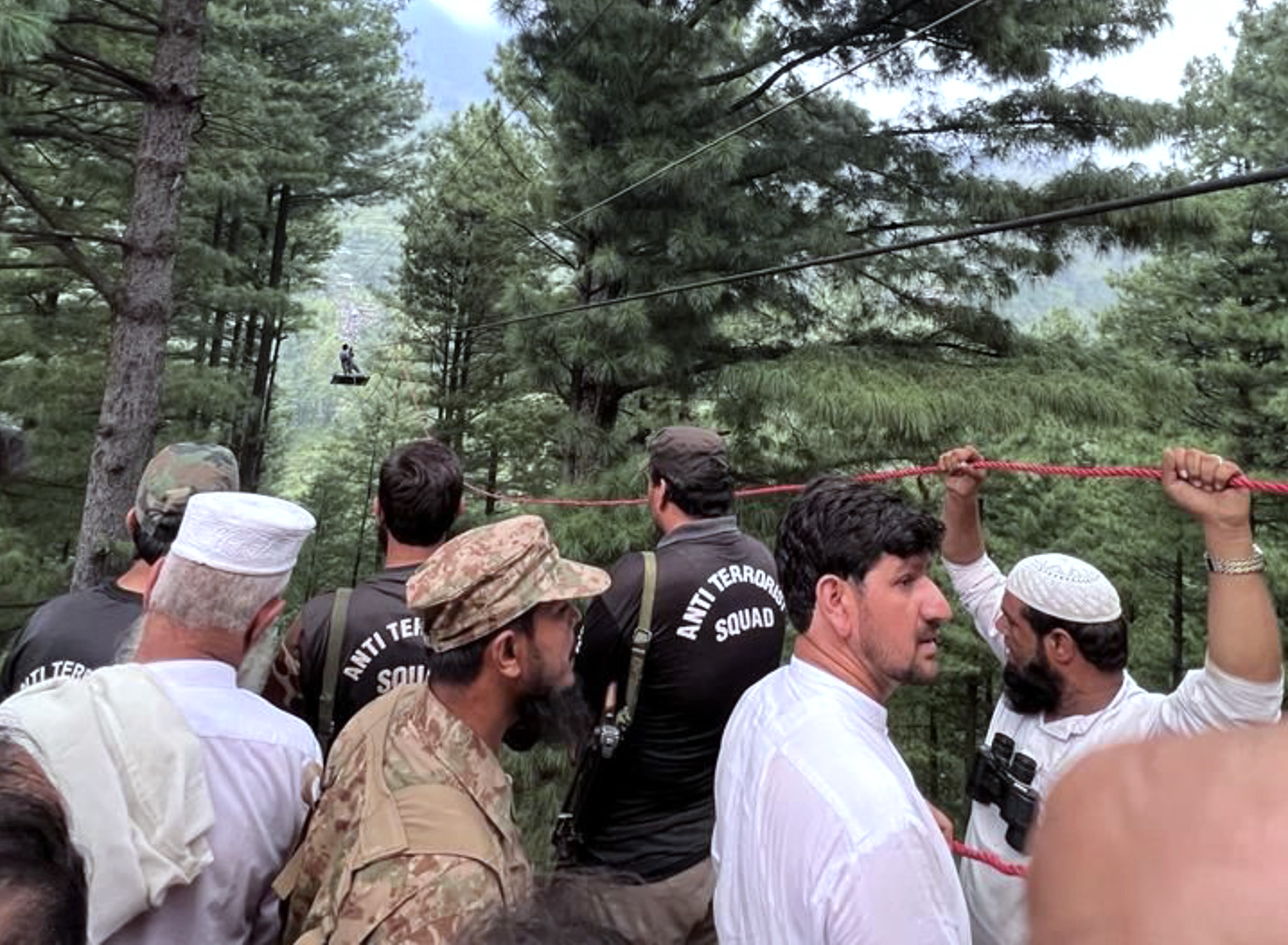 یہ عارضی کیبل کار قریب ترین روڈ لنک سے چار گھنٹے کی مسافت پر ایک ویران جگہ پر تھی۔ پاکستانی فوج کے ایک بیان کے مطابق: ’پاکستان آرمی ایوی ایشن کے پانچ ہیلی کاپٹروں اور پاک فضائیہ کے دو ہیلی کاپٹروں نے ایس ایس جی کمانڈرز اور آرمی کے دستوں کے ساتھ ریسکیو آپریشن میں حصہ لیا۔‘
