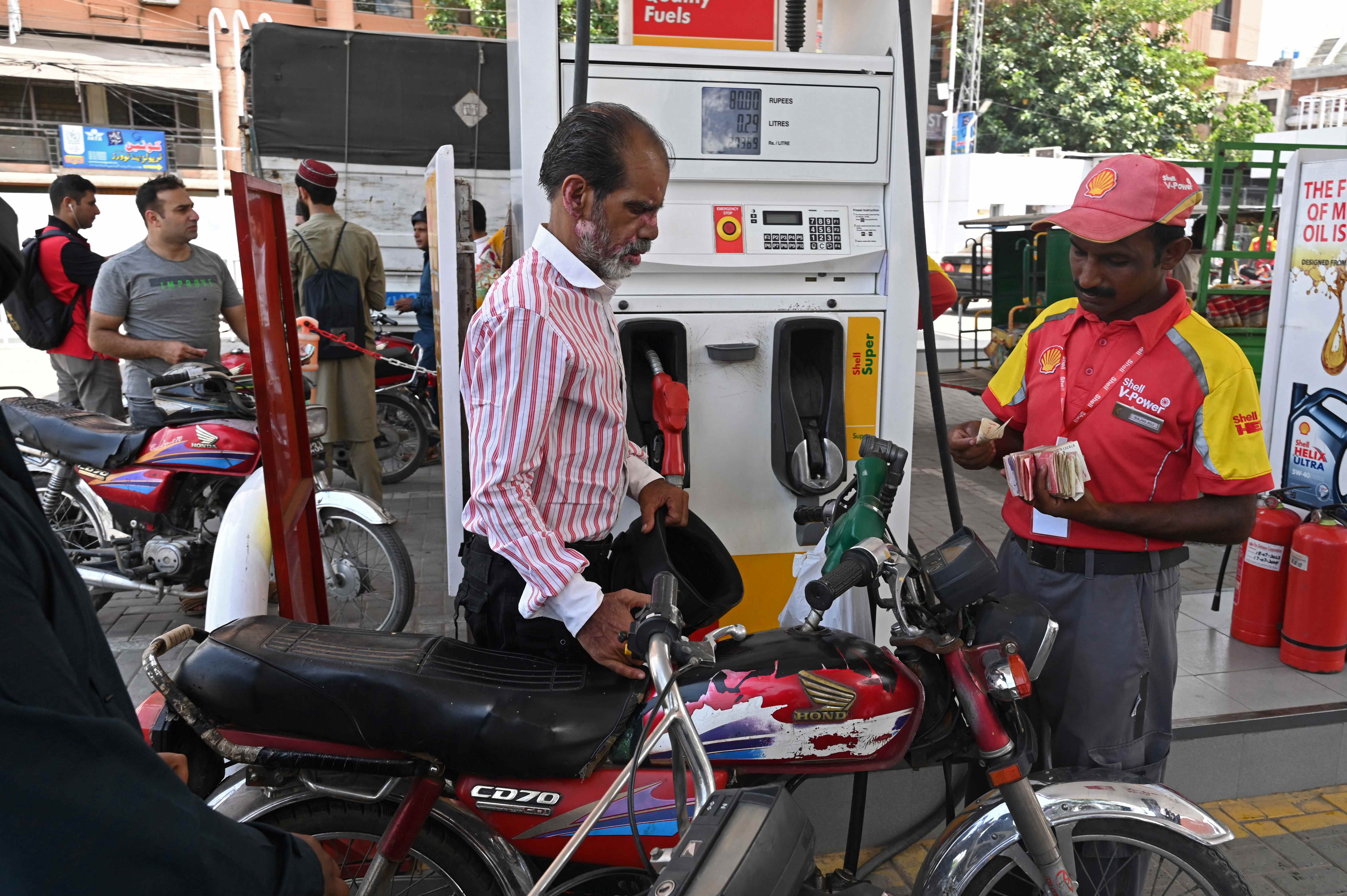 <p>لاہور میں ایک موٹرسائیکل سوار یکم اگست 2023 کو قیمتوں میں اضافے کے بعد موٹر سائیکل میں پیٹرول بھرواتے ہوئے (اے ایف پی)</p>