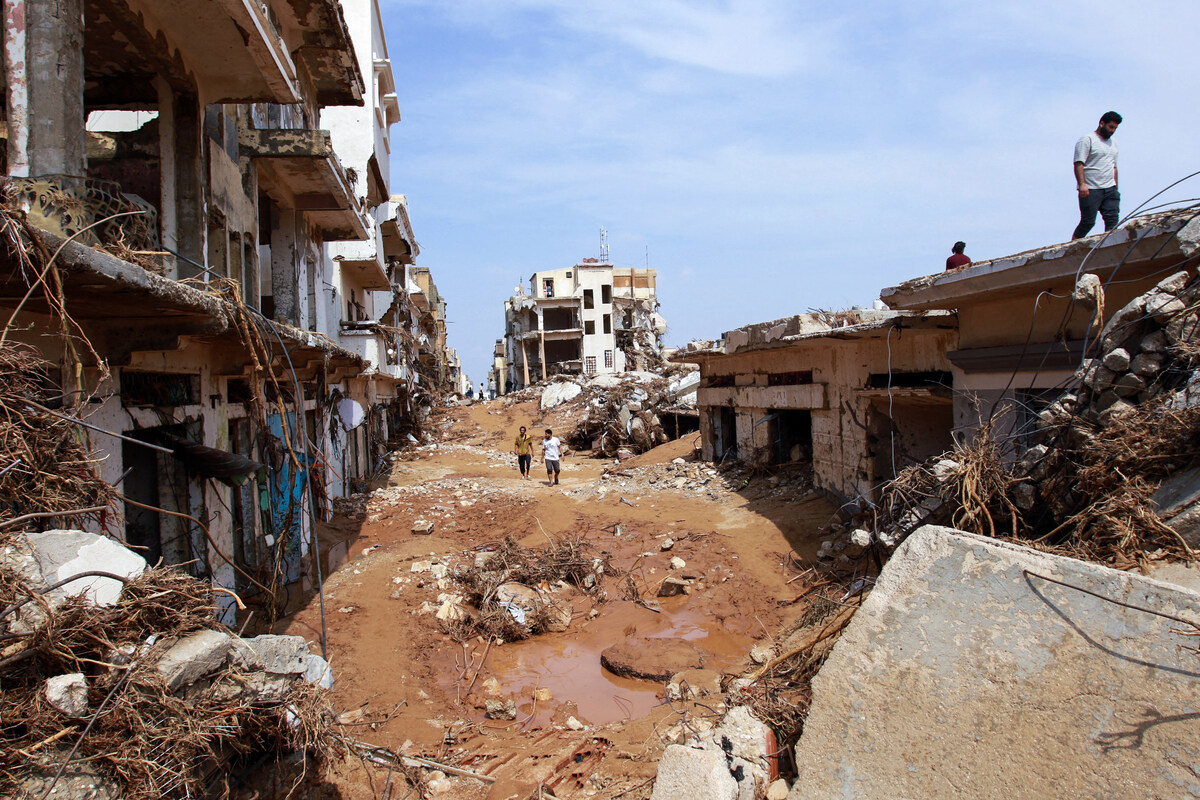 خبر رساں ادارے روئٹرز کے مطابق سوا لاکھ آبادی والے شہر دیرنا میں ڈیم ٹوٹنے کے بعد کئی علاقے صحفہ ہستی سے مٹ گئے جہاں تباہ حال عمارتوں کی چھتوں پر کیچڑ میں لت پت کاریں دیکھی جا سکتی ہیں۔