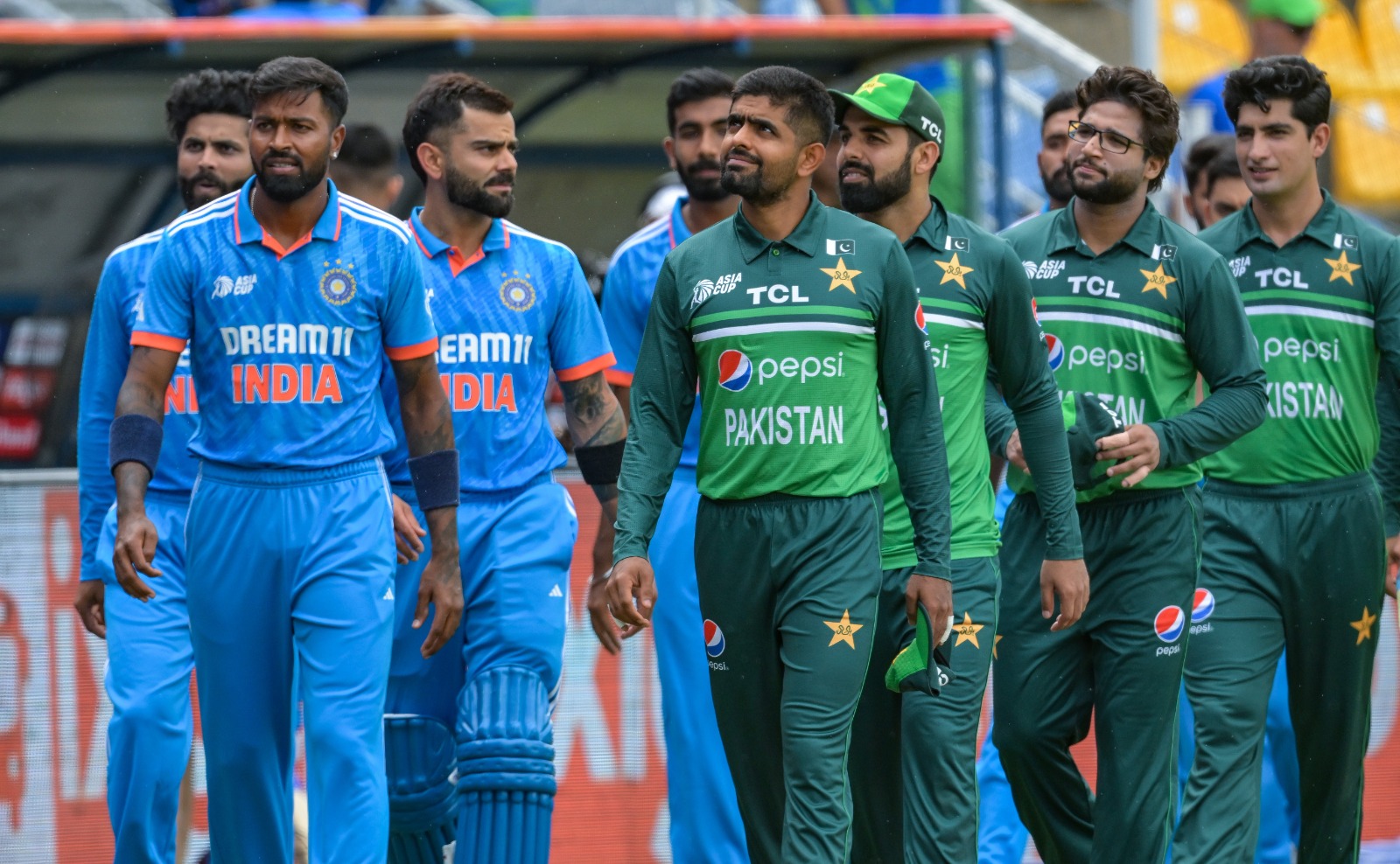 <p class="rteright">دو ستمبر 2023، سری لنکا کے شہر پالی کیلے میں پاکستان اور انڈیا کے درمیان ایشیا کپ کے دوران کھیلے جانے والے میچ میں پاکستانی اور انڈین ٹیم کے کھلاڑی میدان میں آتے ہوئے(اے ایف پی)</p>
