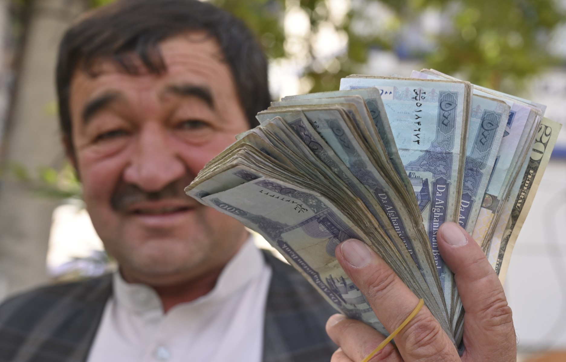 <p class="rteright">ایک منی چینجر 30 جون 2021 کو کابل میں افغانی کرنسی دکھا رہا ہے (اے ایف پی)</p>