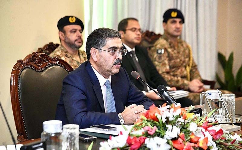 <p class="rteright">24 اگست 2023، نگران وزیراعظم انوار الحق کاکڑ وزارت خارجہ میں ایک اجلاس کے دوران(ایسوسی ایٹڈ پریس آف پاکستان)</p>