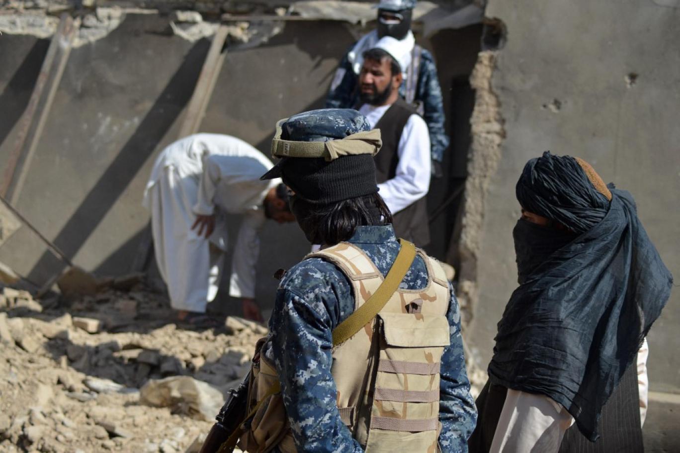 <p class="rteright">15 نومبر 2021 کو قندھار میں طالبان کا ایک رکن داعش خراسان کے خلاف آپریشن کے بعد مشتبہ ٹھکانے کے ملبے کے سامنے پہرہ دے رہا ہے (اے ایف پی)</p>