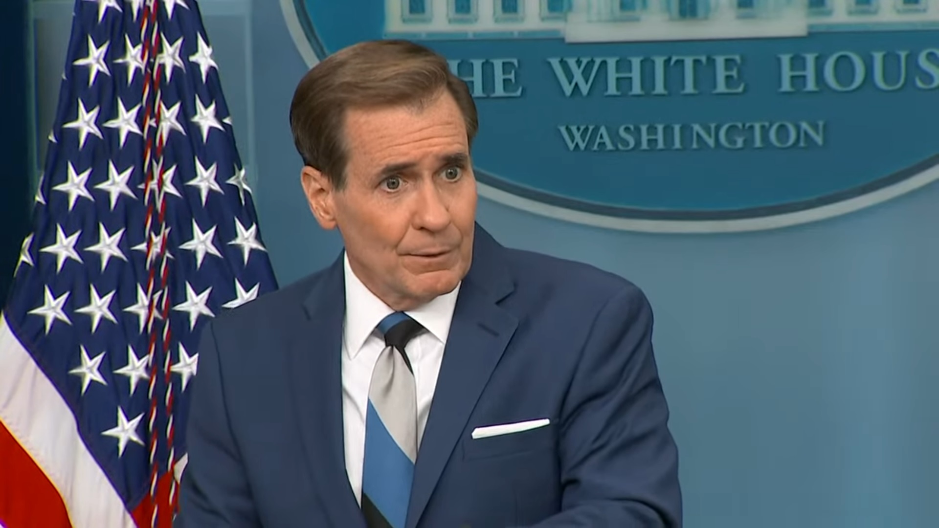 <p>امریکہ کی قومی سلامتی کونسل کے ترجمان جان کربی میڈیا بریفنگ کے دوران ذرائع ابلاغ کے نمائندوں سے گفتگو کر رہے (امریکی وائٹ ہاؤس)</p>
