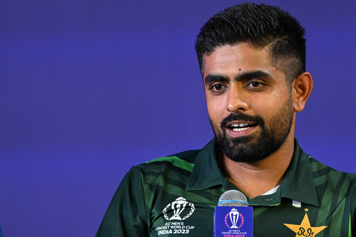 <p>پاکستان کرکٹ ٹیم کے کپتان بابر اعظم 4 اکتوبر 2023 کو احمد آباد میں 2023 کے آئی سی سی مینز کرکٹ ورلڈ کپ کے حوالے سے ’کیپٹنز ڈے‘ ایونٹ کے دوران میڈیا کے ساتھ بات چیت کر رہے ہیں (پونیت پرانجپی/ اے ایف پی)</p>