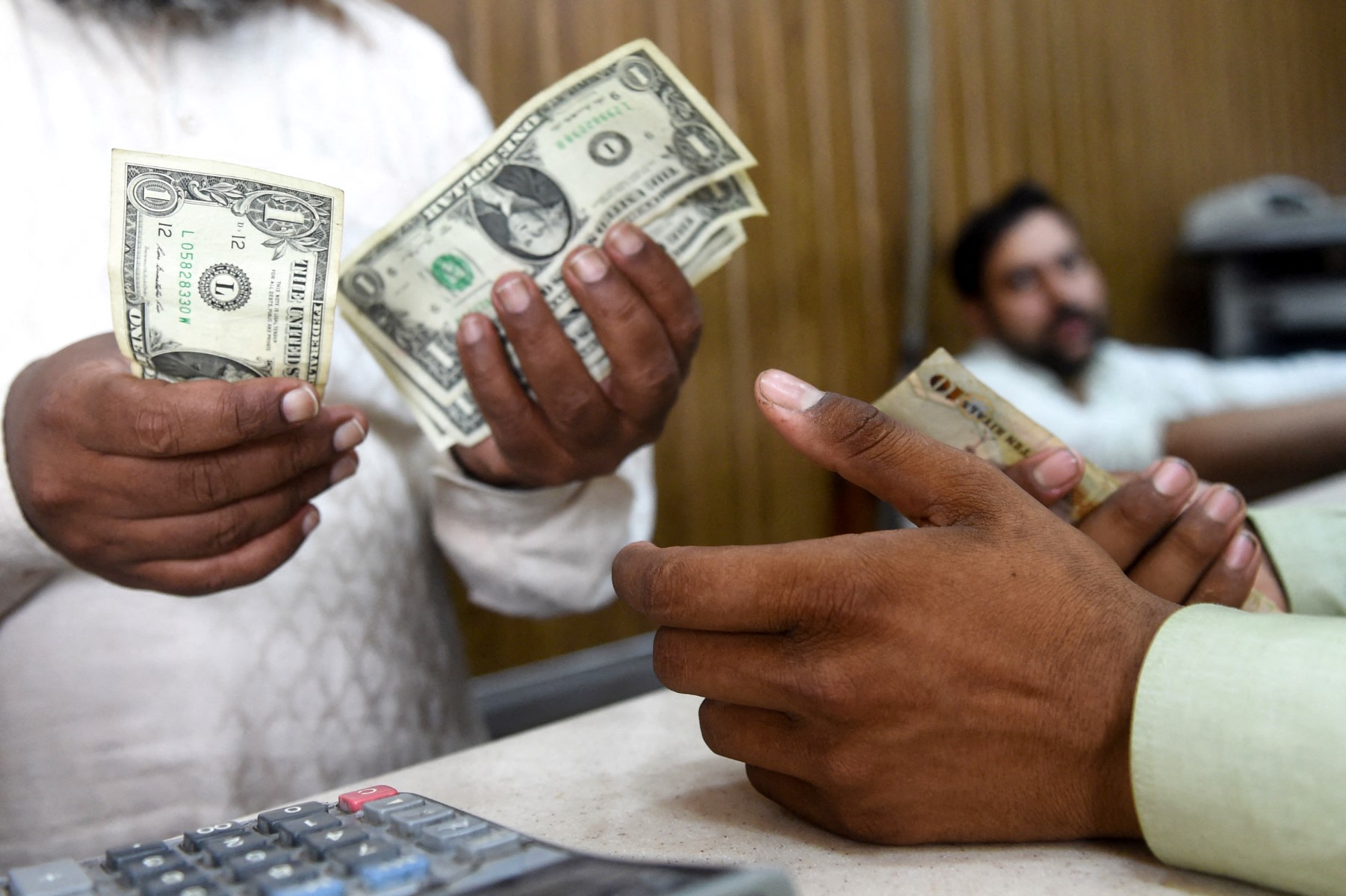 <p>16 مئی2019 کو لاہور میں کرنسی ایکسچینج میں ایک شخص امریکی ڈالر گن رہا ہے (فائل فوٹو/ اے ایف پی)</p>