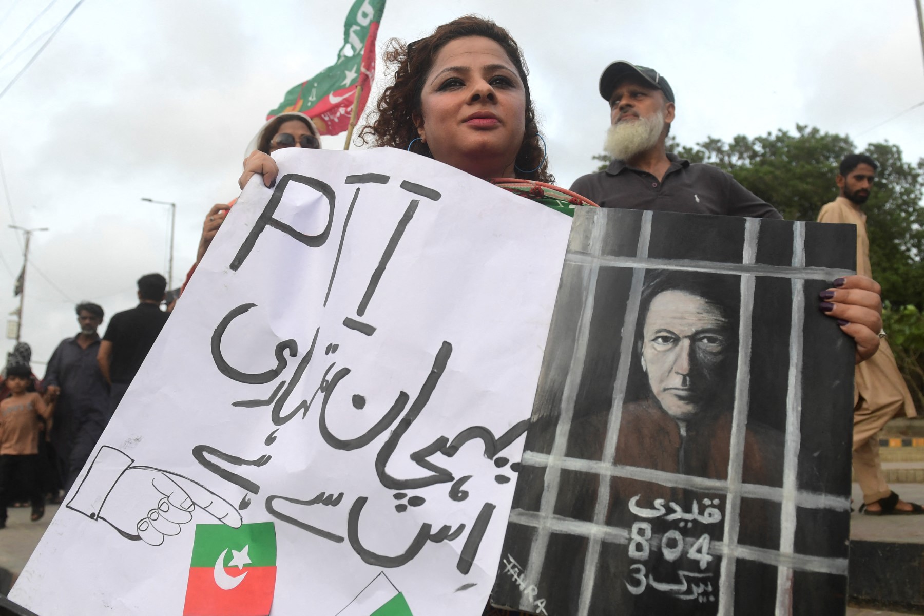 <p>پاکستان تحریک انصاف کے کارکنان اور حامی 27 اگست 2023 کو کراچی میں پاکستان کے سابق وزیر اعظم عمران خان کی گرفتاری کے خلاف احتجاج کر رہے ہیں (فائل فوٹو اے ایف پی)</p>
