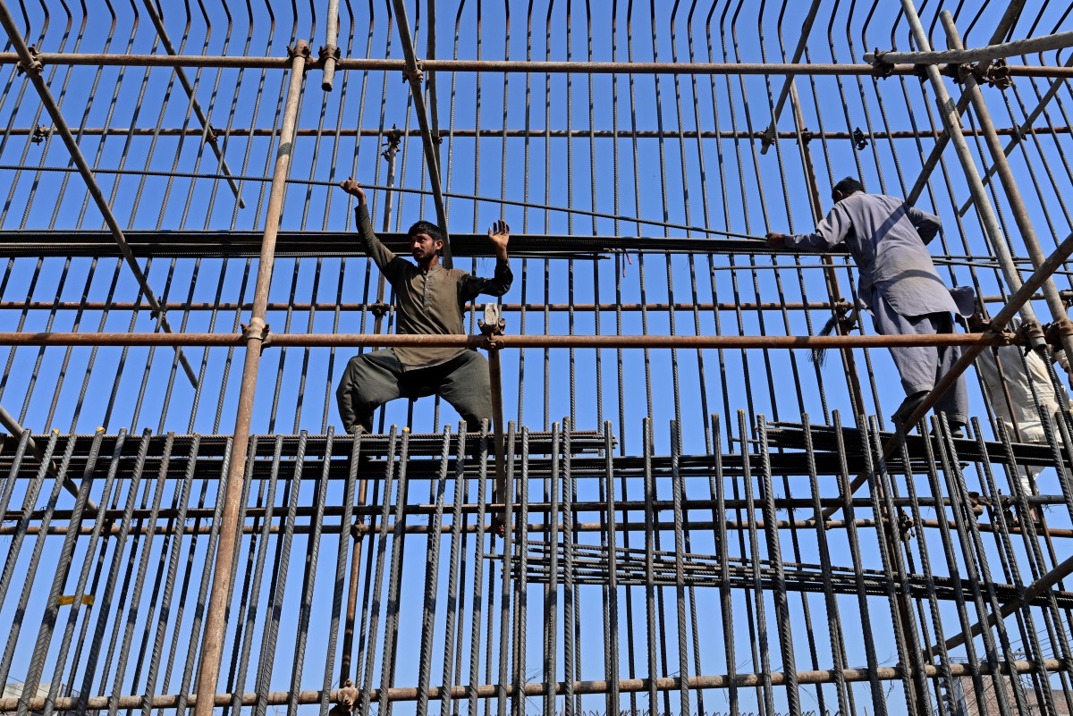 <p class="rteright">چھ دسمبر 2023 کو لاہور میں مزدور ایک مقام پر تعمیری کام کرتے ہوئے (اے ایف پی/ عارف علی)</p>