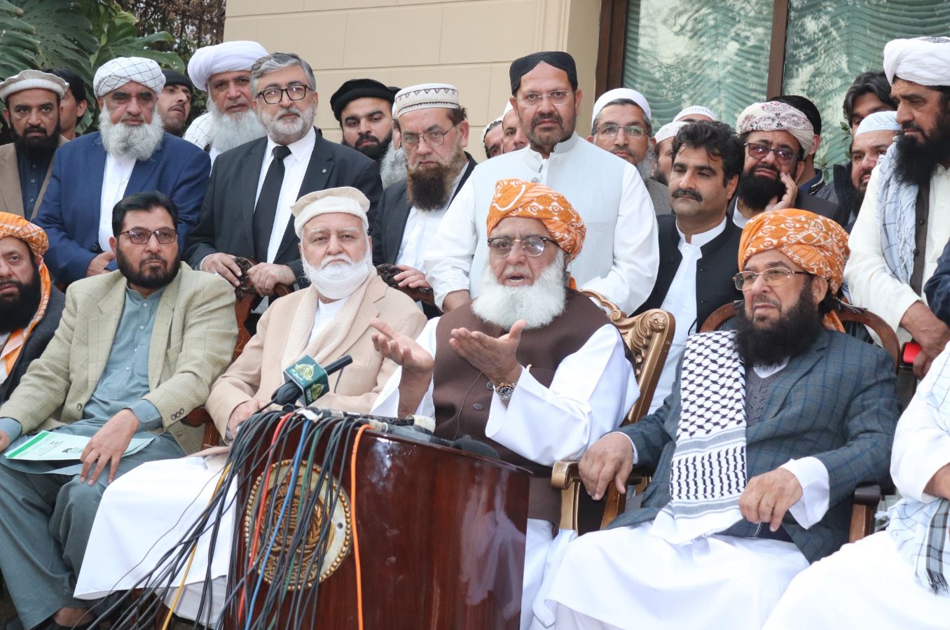 <p>مولاقنا فضل الرحمٰن نے میڈیا سے گفتگو میں انتخابات کے نتائج کو مسترد کرتے ہوئے تحریک کا اعلان کیا (جے یو آئی پاکستان) </p>