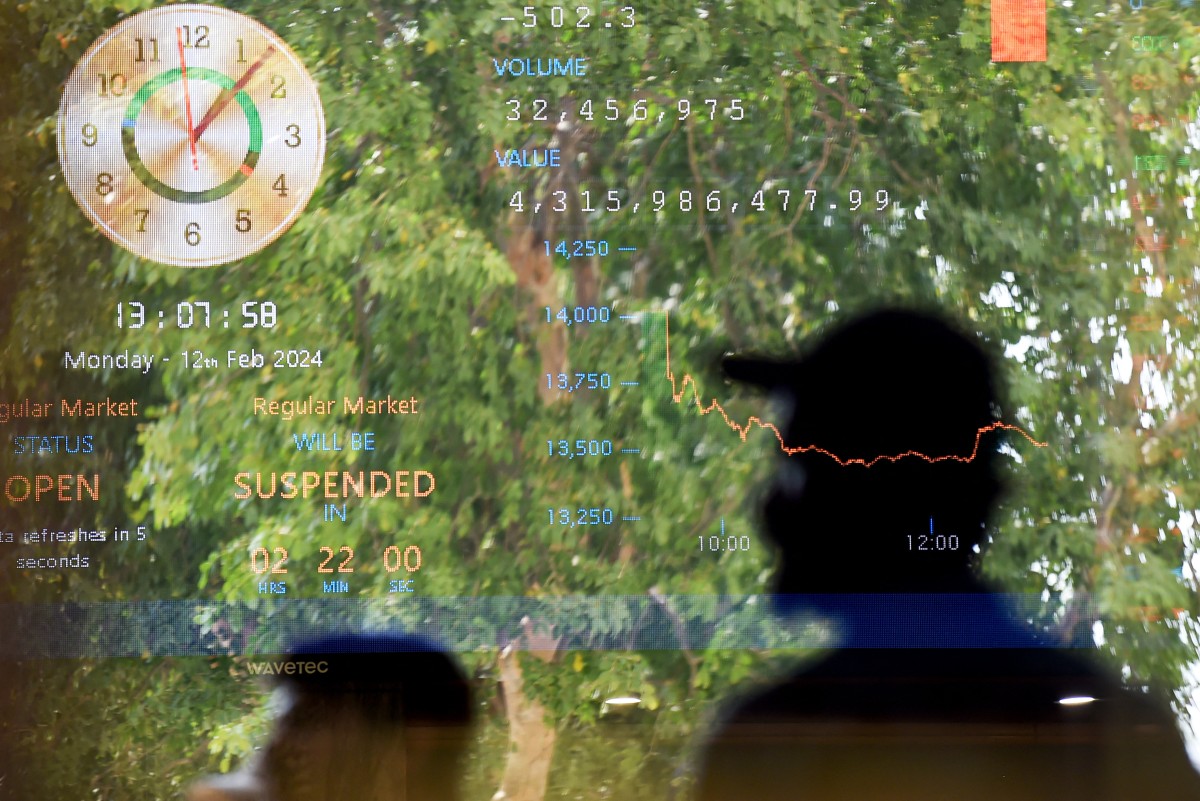 <p>12 فروری2024 کو سٹاک بروکرز کراچی میں پاکستان سٹاک ایکسچینج (پی ایس ایکس) میں ٹریڈنگ سیشن کے دوران (آصف حسن/ اے ایف پی)</p>