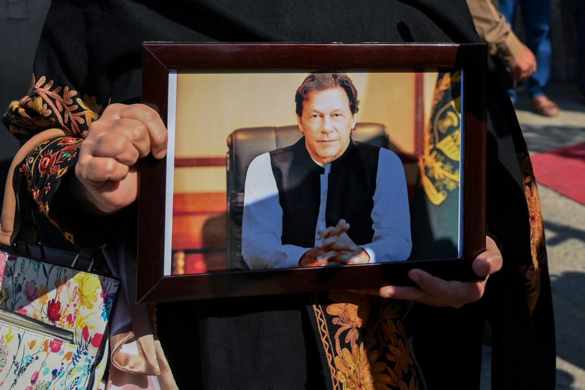 <p>پاکستان تحریک انصاف (پی ٹی آئی) کی رہنما فلک ناز چترالی نے نو مارچ 2024 کو ہونے والے صدارتی انتخابات کے دوران ووٹ ڈالنے کے لیے اسلام آباد پہنچنے پر جیل میں قید پاکستان کے سابق وزیر اعظم عمران خان کی تصویر اٹھا رکھی ہے (اے ایف پی)</p>