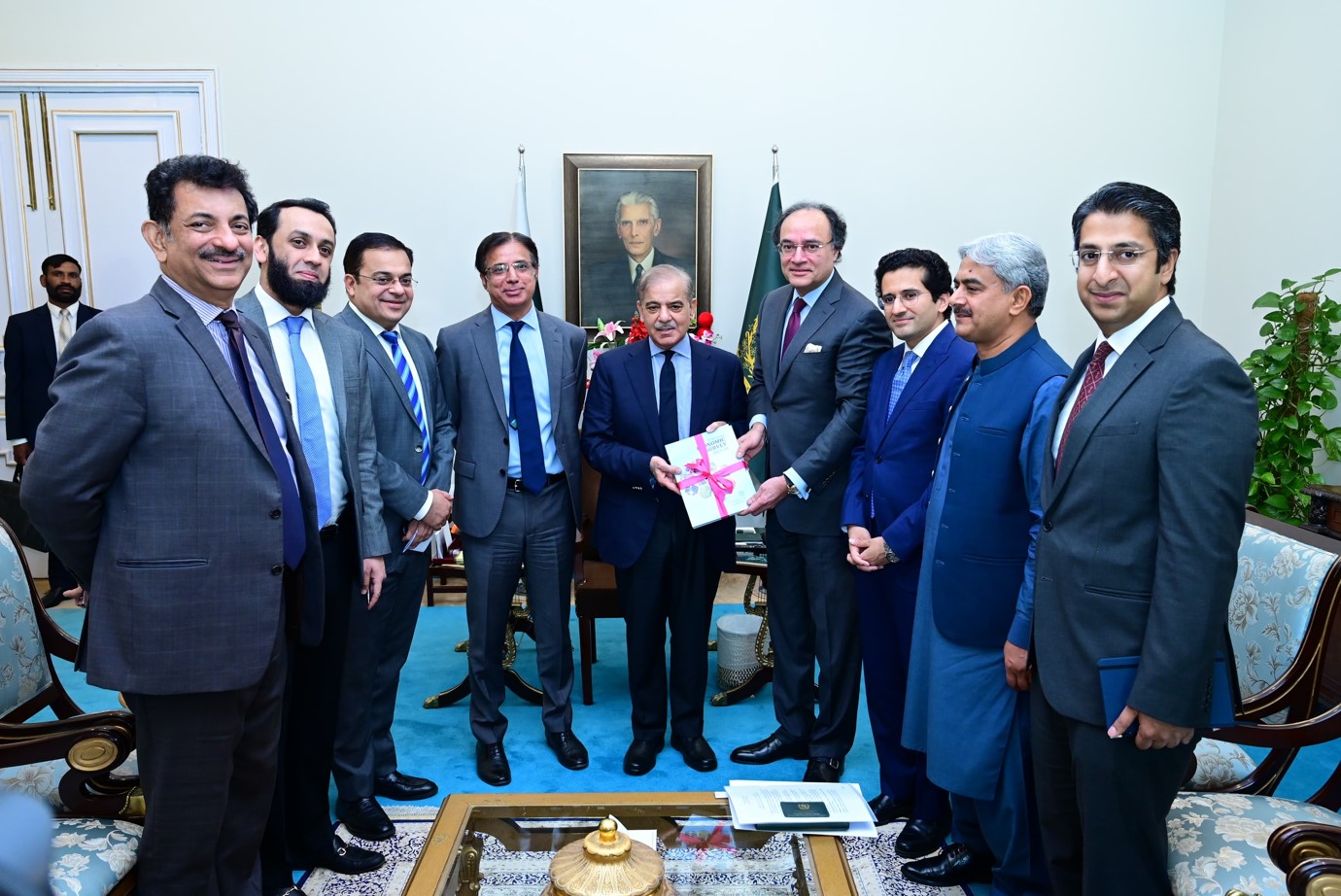 <p>اسلام آباد میں وفاقی وزیر خزانہ اور محصولات محمد اورنگزیب 11 جون 2024 کو وزیراعظم شہباز شریف کو اقتصادی سروے آف پاکستان 2023-2024 کی کاپی پیش کر رہے ہیں (ایوان وزیر اعظم، اسلام آباد)</p>
