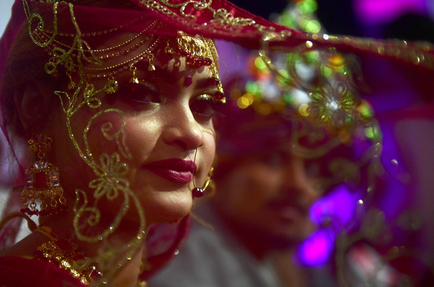 <p>ایک پاکستانی جوڑا آٹھ جنوری 2023 کو کراچی میں اجتماعی شادی کی تقریب میں شریک (آصف حسن / اے ایف پی)</p>