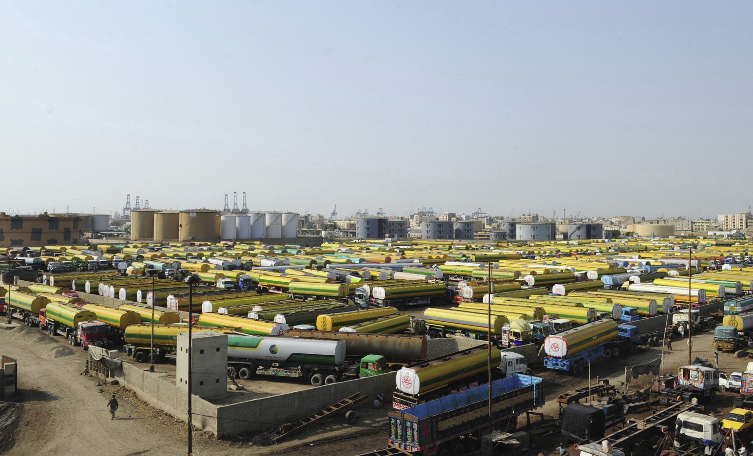 <p>22 فروری 2011 اس تصویر میں پاکستان کے شہر کراچی میں ایک مقامی آئل ریفائنری کے باہر کھڑے سینکڑوں ٹینکروں کو دیکھا جا سکتا ہے (آصف حسن/ اے ایف پی)</p>