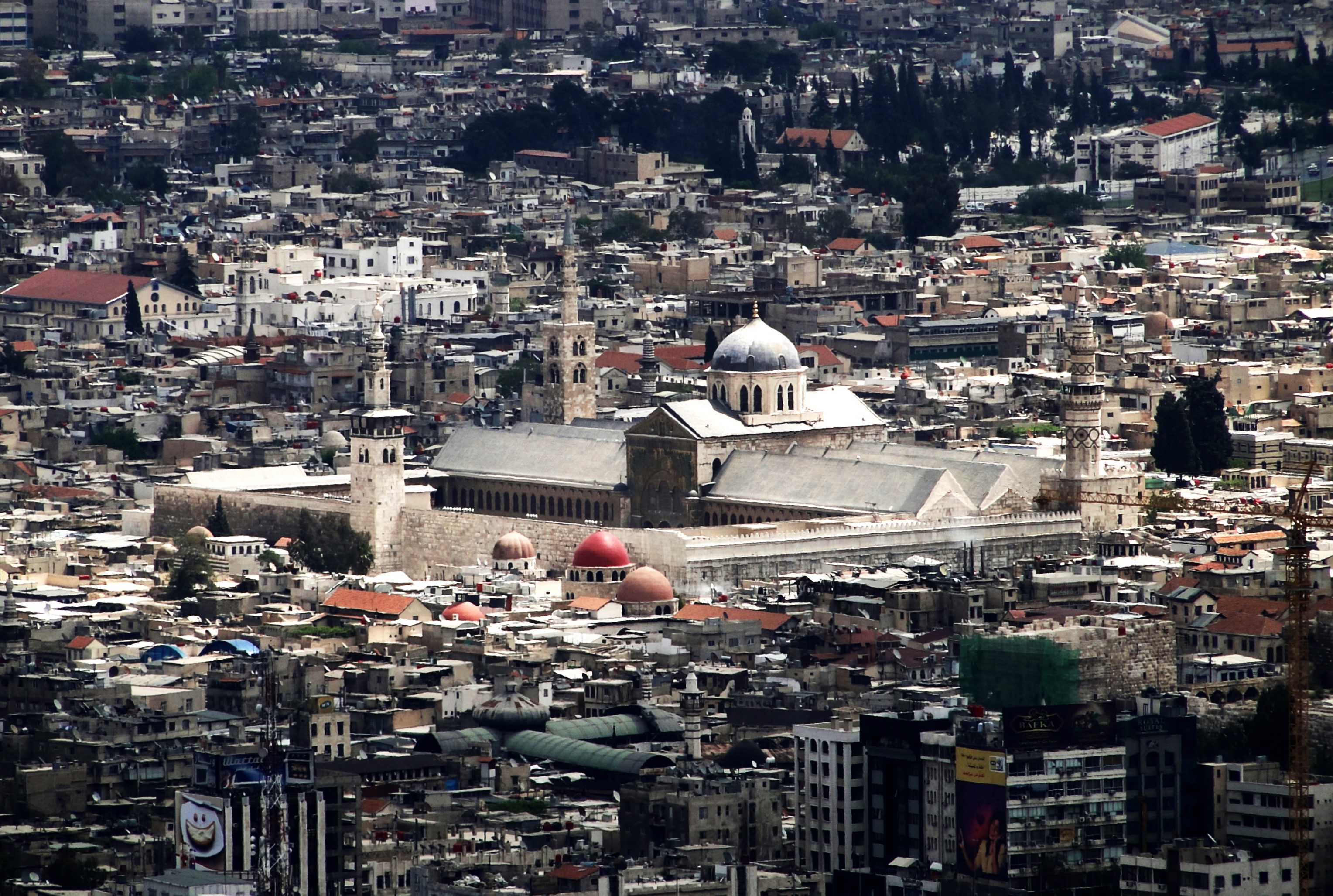 دمشق کو یہ اعزاز حاصل ہے کہ یہ دنیا کے قدیم ترین شہروں میں سے ایک ہے، جو ہزاروں سال سے مسلسل آباد چلا آ رہا ہے۔ یہاں پر حداد کا وہ تاریخی مندر بھی دریافت ہوا ہے جو تین ہزار سال پرانا ہے، جسے آرامی قوم خدا گردانتی تھی۔ مسجد کی بنیادیں رکھتے وقت پتھر کی ایک ایسی تختی بھی ملی ہے، جس پر ایک ایسی شبیہ بنی ہوئی ہے، جس کا دھڑ شیر کا اور سر انسان کا ہے۔ پہلی صدی کے اوائل میں رومیوں نے یہیں پر مشتری کے مندر کی بنیاد رکھی تھے، جو قدیم رومیوں کے عقائد کے مطابق آسمانوں اور بارشوں کا خدا ہے۔ اس مندر کی کچھ باقیات اب بھی موجود ہیں۔