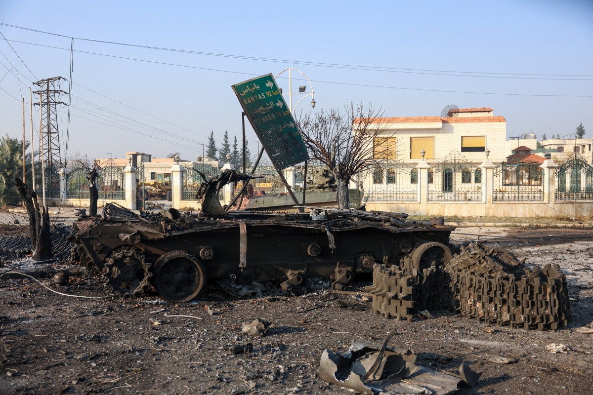 <p class="rteright">حکومت مخالف گروپوں کے قبضے کے بعد شامی فوج کا ایک تباہ شدہ ٹینک چھ دسمبر 2024 کو حماۃ کی ایک گلی میں دیکھا جا سکتا ہے (اے ایف پی)</p>