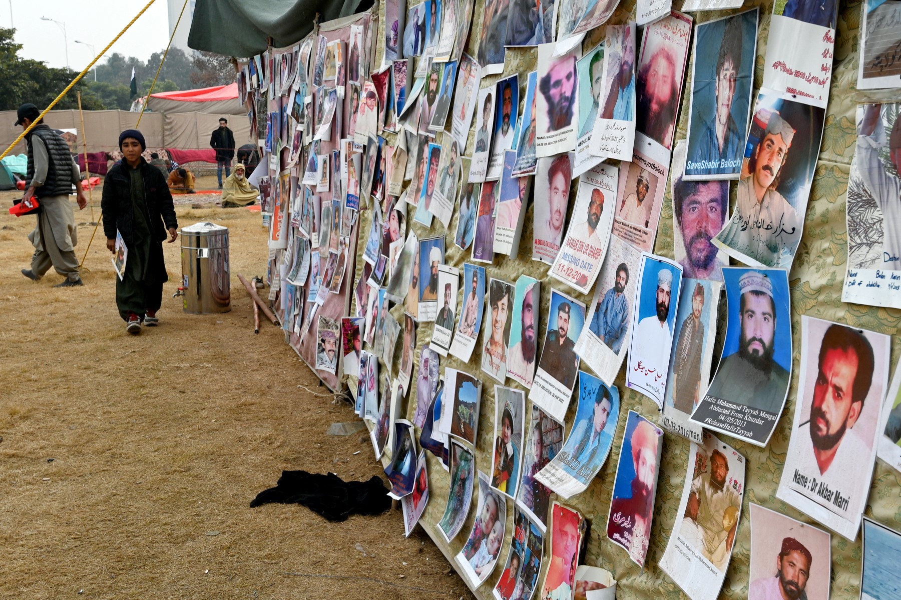 <p class="rteright">اسلام آباد میں 22 جنوری، 2024 کو لاپتہ افراد کے لیے کیے گئے مظاہرے میں ان افراد کی تصاویر لگی دیکھی جا سکتی ہیں (فائل فوٹو/ اے ایف پی)</p>