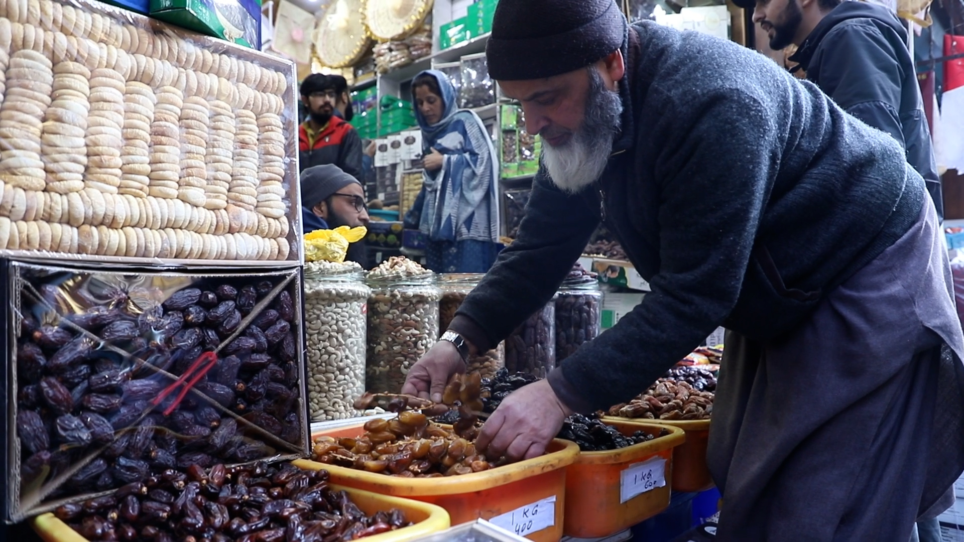 انڈیا کے زیر انتظام کشمیر کے شہر سری نگر کے مرکزی علاقے میں خشک میوہ جات کی دکان پر لوگ مختلف اقسام کی کھجوریں خریدنے کے لیے جمع ہوتے ہیں، خریدار بہترین معیار کی کھجوروں کے بارے میں دریافت کرتے ہیں جب کہ کچھ لوگ خصوصی طور پر مدینہ منورہ کی کھجوریں طلب کرتے ہیں۔
