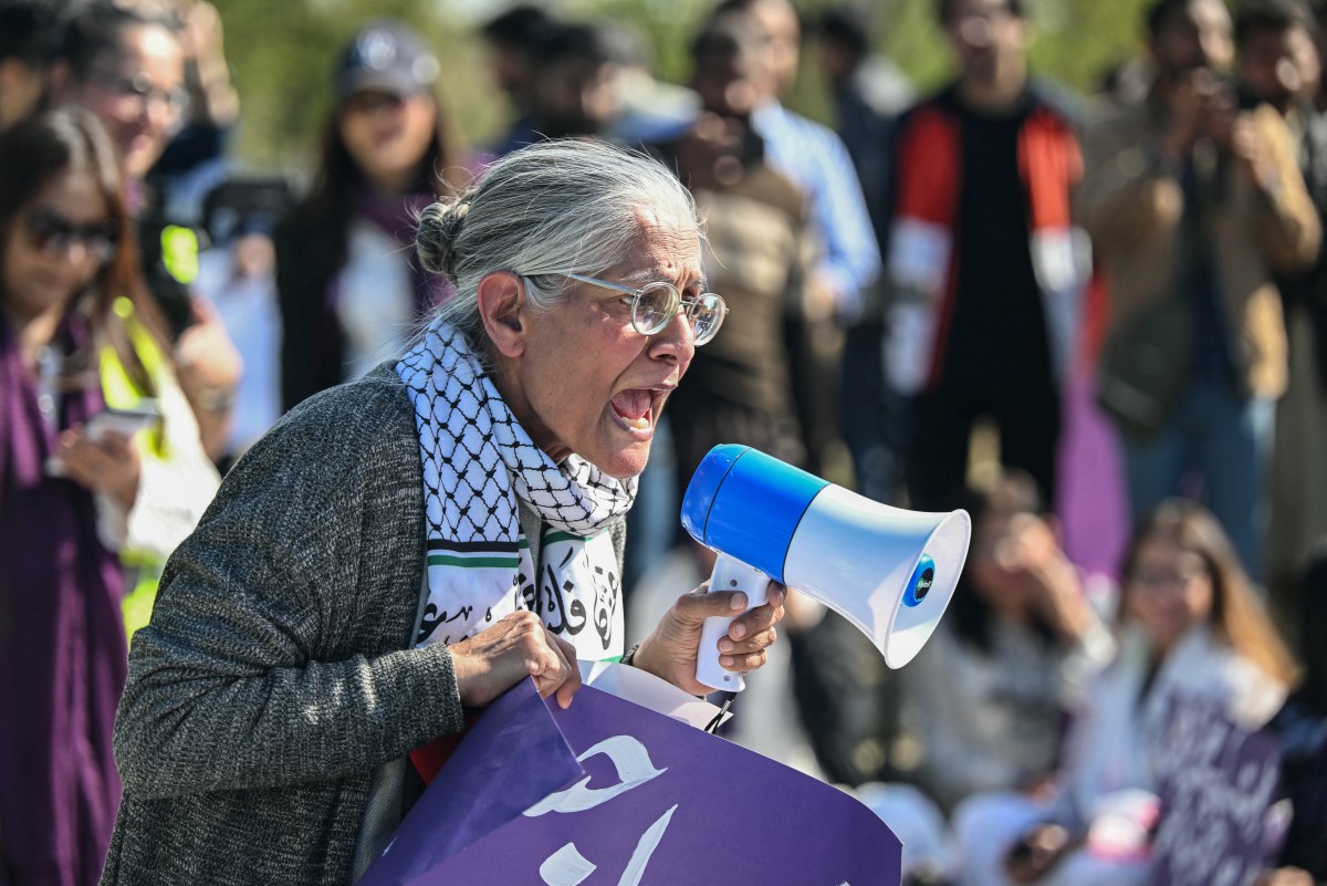 <p>پاکستان میں انسانی حقوق کی کارکن طاہرہ عبداللہ آٹھ مارچ 2025 کو اسلام آباد میں خواتین کے عالمی دن کے موقع پر ’عورت مارچ‘ گروپ کے ایک مظاہرے کے دوران خطاب کر رہی ہیں (فاروق نعیم / اے ایف پی)</p>