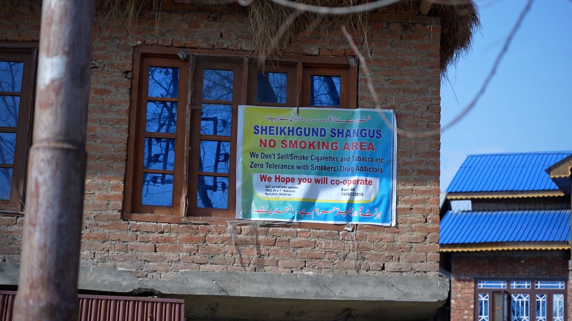 گاؤں میں ایسے پوسٹرز بھی آویزاں کیے گئے ہیں جن پر ’نو سموکنگ زون‘ لکھا ہوا ہے۔