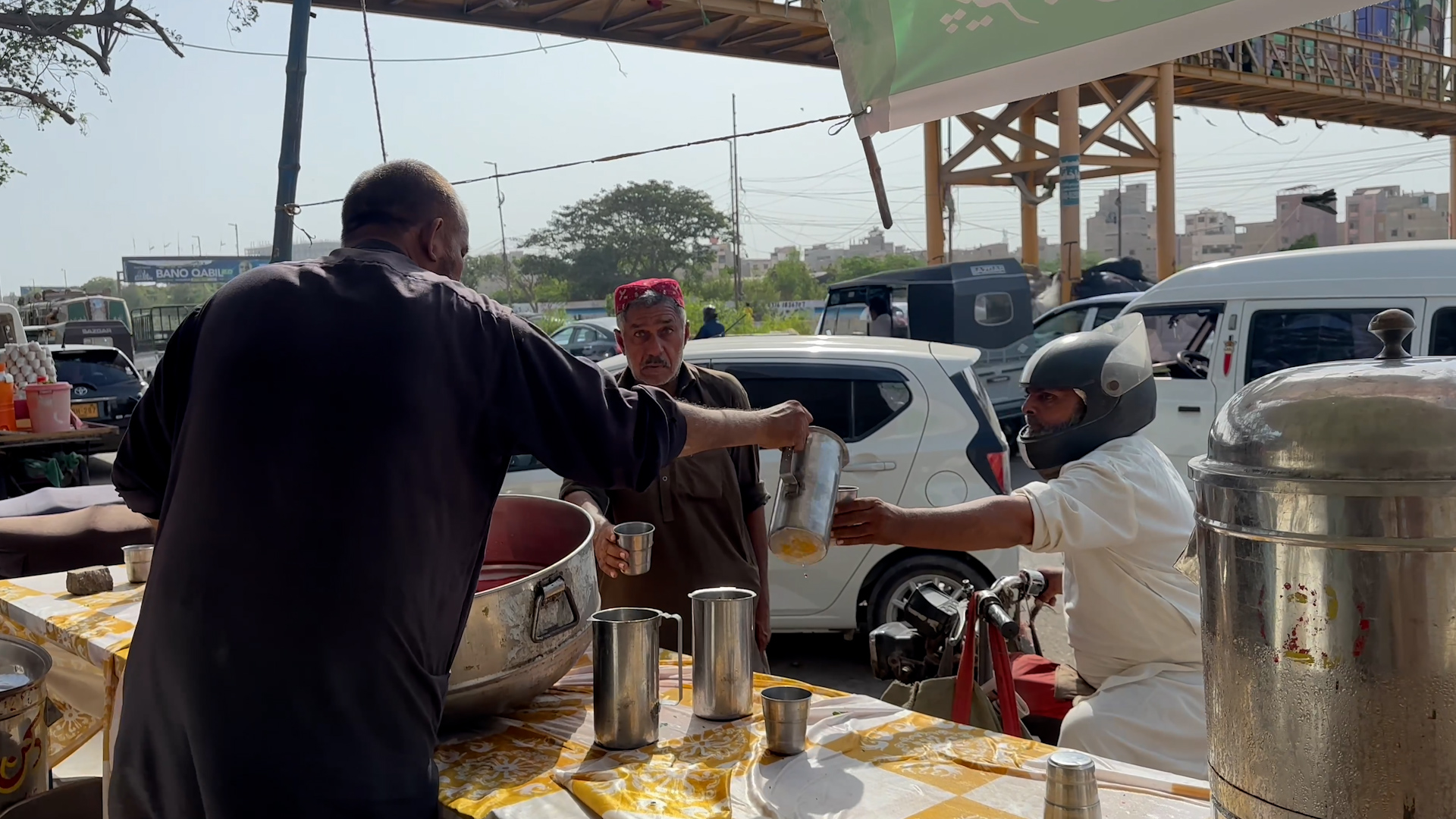 <p>کراچی میں گرمی کی تازہ لہر کے باعث لوگوں نے شاہراہوں پر پانی کی سبیلیں لگائی ہوئی ہیں، ایک موٹر سائیکل سوار اس سبیل سے پانی پی رہا ہے (انڈپینڈنٹ اردو / صالحہ فیروز خان)</p>