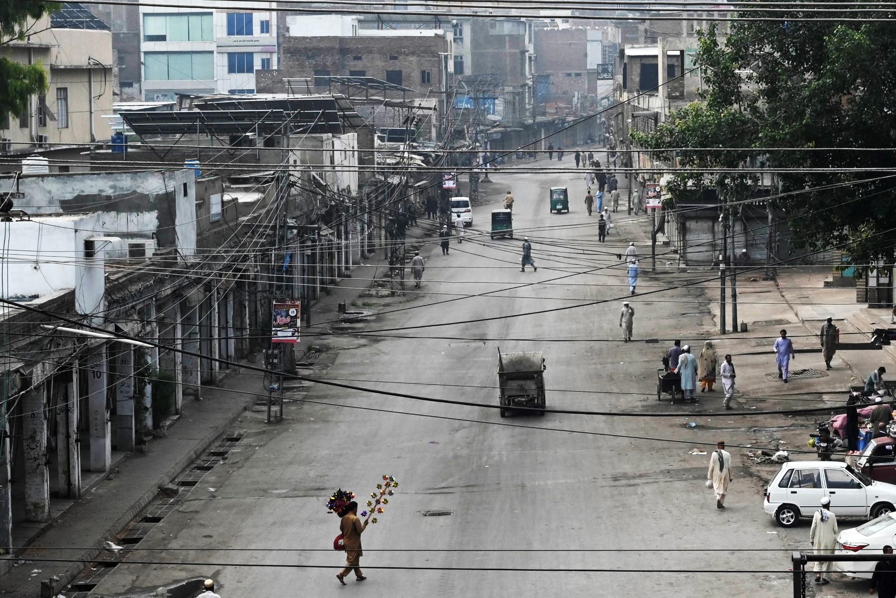<p>28 اگست 2024 کو پشاور میں ملک گیر ہڑتال کے دوران راہگیر گلی سے گزر رہے ہیں (عبدالمجید/ اے ایف پی)</p>