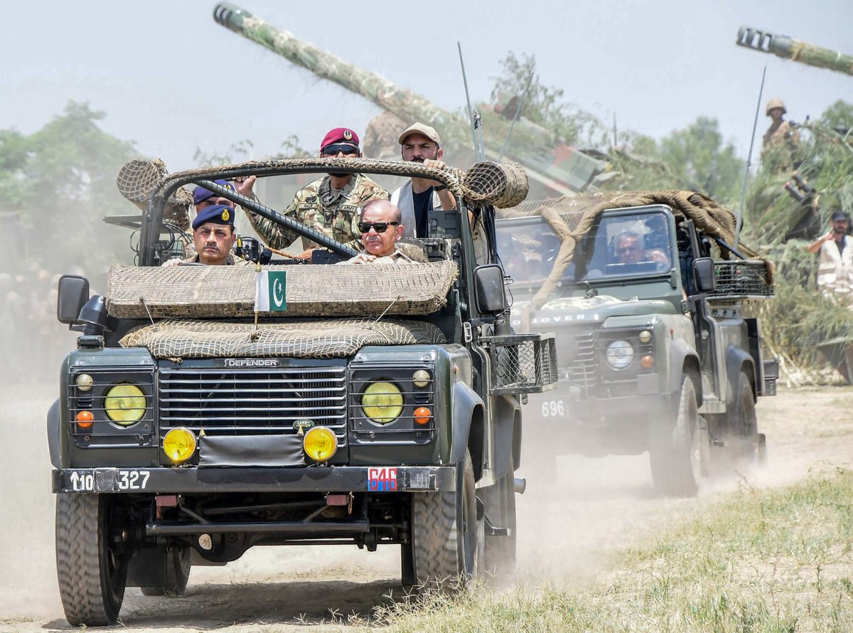 <p>14 مئی 2025 کو آئی ایس پی آر کی طرف سے جاری کی گئی اس ہینڈ آؤٹ تصویر میں پاکستان کے وزیر اعظم شہباز شریف کو ملک کے آرمی چیف جنرل سید عاصم منیر کے ساتھ صوبہ پنجاب کے سیالکوٹ میں پسرور چھاؤنی کا دورہ کرتے ہوئے دکھایا گیا ہے (آئی ایس پی آر/ اے ایف پی)</p>