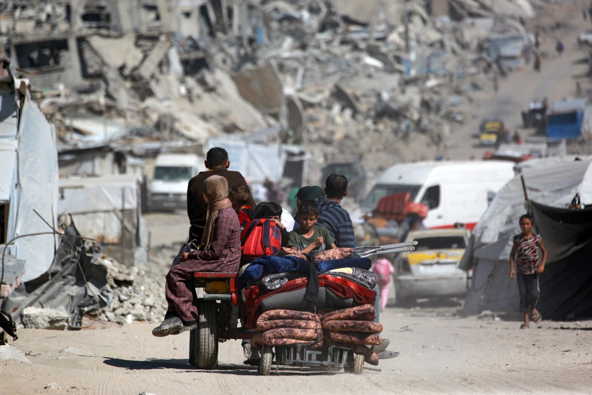 <p class="rteright">16 مئی 2025 کو غزہ شہر سے انخلا کے دوران فلسطینی اپنا سامان لے جا رہے ہیں، اسرائیل نے غزہ کی پٹی پر دوبارہ ’وسیع حملوں‘ کا آغاز کیا ہے (بشارت طالب / اے ایف پی)</p>