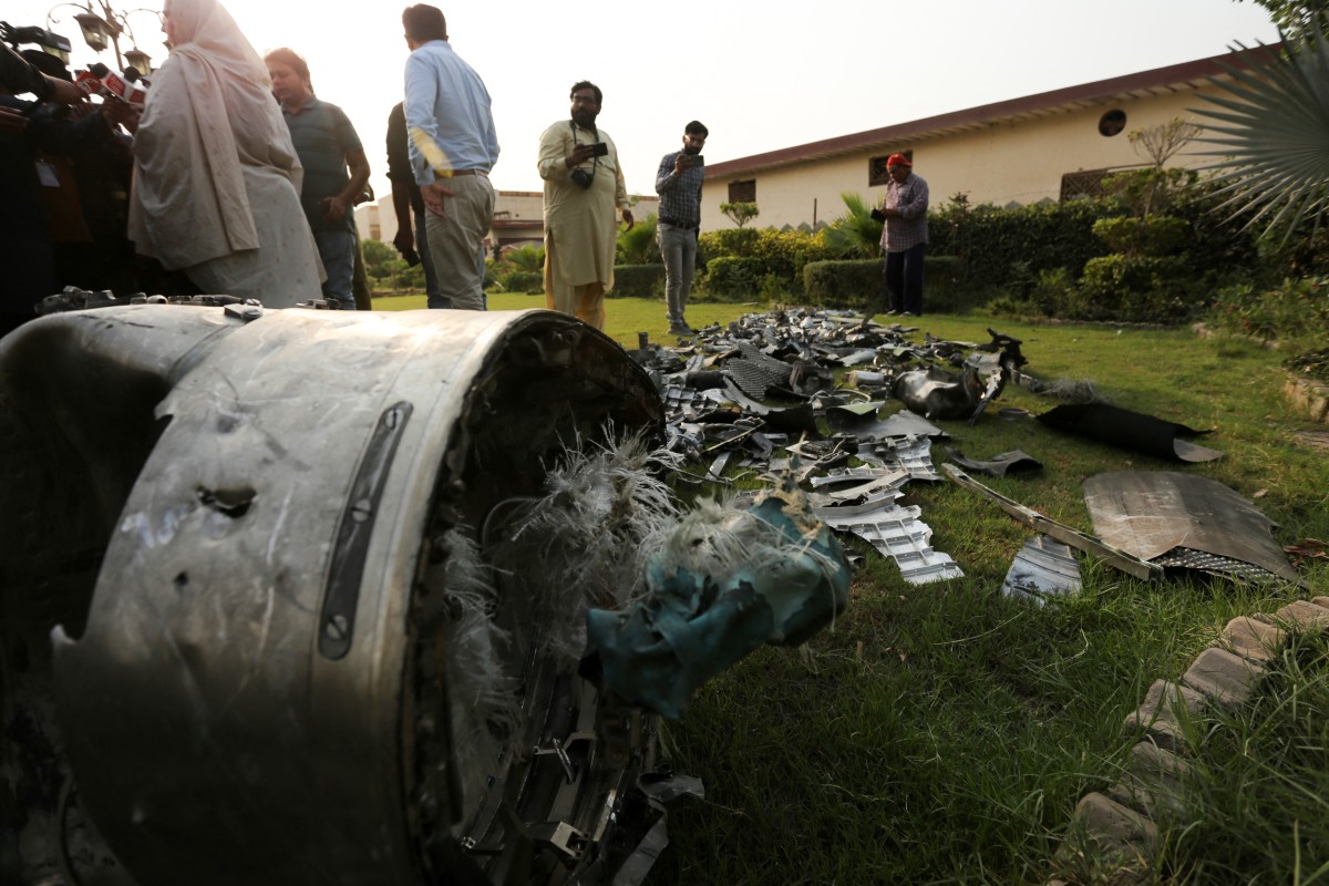 <p>سات مئی 2025 کو پاکستان کے صوبہ پنجاب کے بہاولپور سے تقریباً 7 کلومیٹر دور احمد پور شرقیہ میں انڈین حملوں کے بعد صحافی ایک مدرسے کے احاطے میں میزائل کے ٹکڑوں کی فلم بنا رہے ہیں (شاہد سعید مرزا/ اے ایف پی)</p>