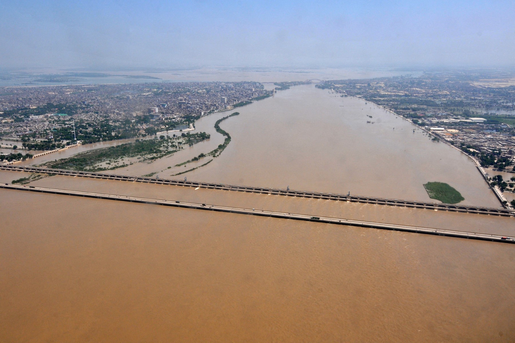 <p class="rteright">31 اگست 2022 کو لی گئی اس فضائی تصویر میں صوبہ سندھ کے شہر سکھر میں شدید بارشوں کے بعد سکھر بیراج کے ساتھ دریائے سندھ میں سیلابی پانی کو دیکھا جا سکتا ہے (اے ایف پی)</p>