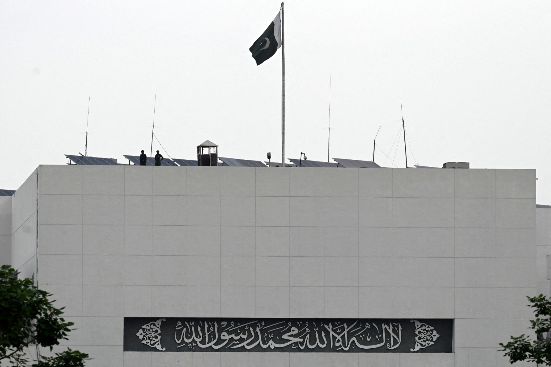 <p class="rteright">پاکستانی پارلیمنٹ کی عمارت پر نو اگست 2023 کو قومی پرچم لہرا رہا ہے (عامر قریشی / اے ایف پی)</p>