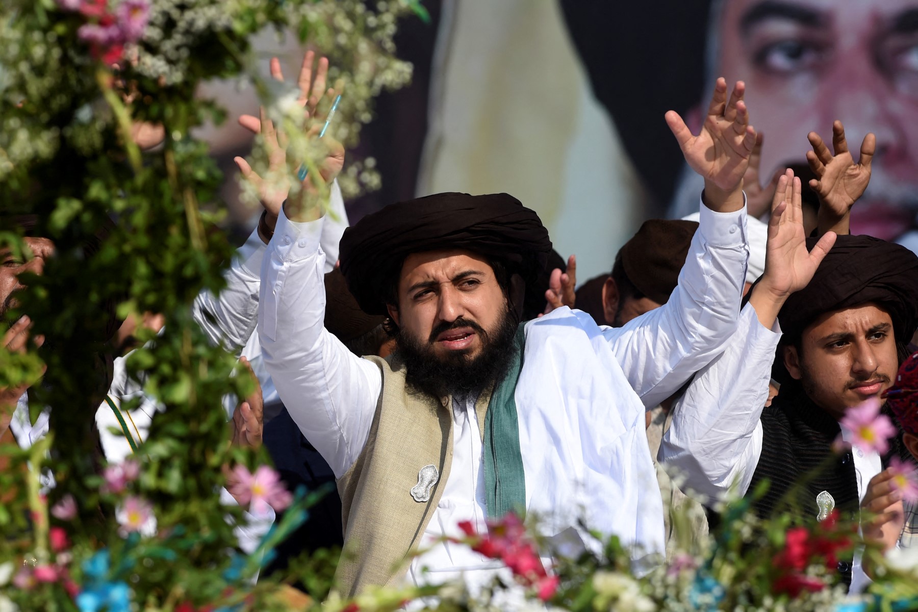 <p class="rteright">تحریک لبیک پاکستان کے سربراہ سعد رضوی 21 نومبر 2021 کو لاہور میں اپنے والد خادم حسین رضوی کی برسی کے موقعے پر حامیوں سے خطاب کے دوران (عارف علی / اے ایف پی)</p>