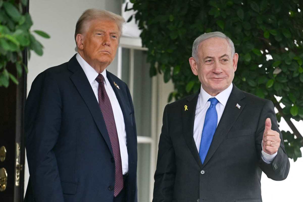 <p>امریکی صدر ڈونلڈ ٹرمپ 29 ستمبر، 2025 کو وائٹ ہاؤس پہنچنے پر اسرائیلی وزیر اعظم بن یامین نتن یاہو کا استقبال کر رہے ہیں (اے ایف پی)</p>