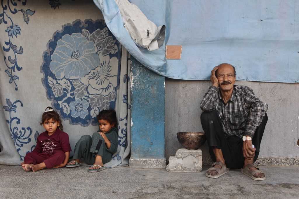 <p class="rteright">ایک شخص پانچ نومبر، 2025 کو غزہ شہر کے علاقے الرمل میں ایک سکول میں قائم بے گھر فلسطینیوں کے کیمپ میں بچوں کے ساتھ بیٹھا ہے (اے ایف پی)</p>