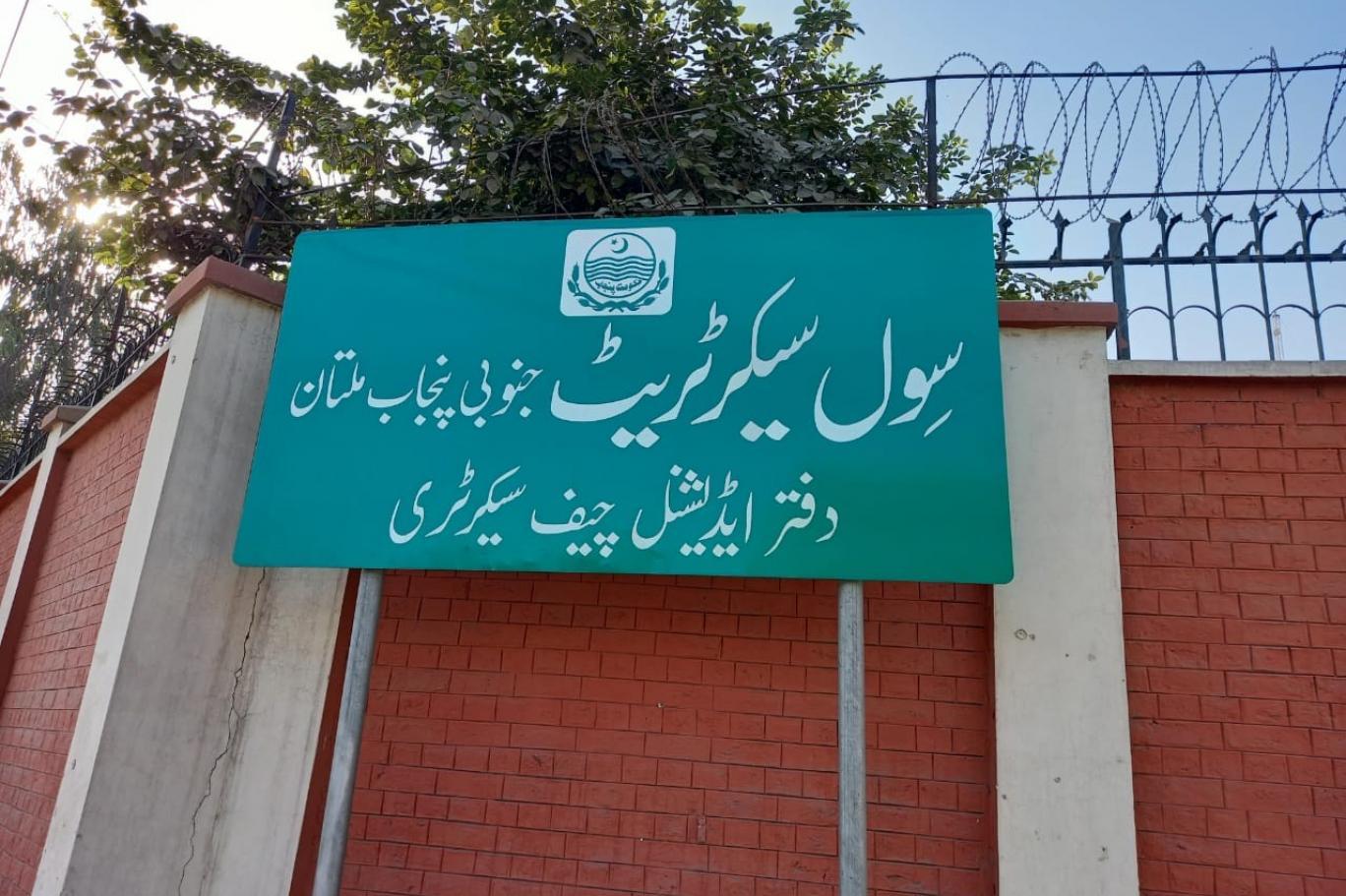 <p>ملتان میں جنوبی پنجاب سیکرٹیریٹ کے دفتر کے باہر لگی ایک تختی (تصویر بشکریہ: محمد نوید)</p>