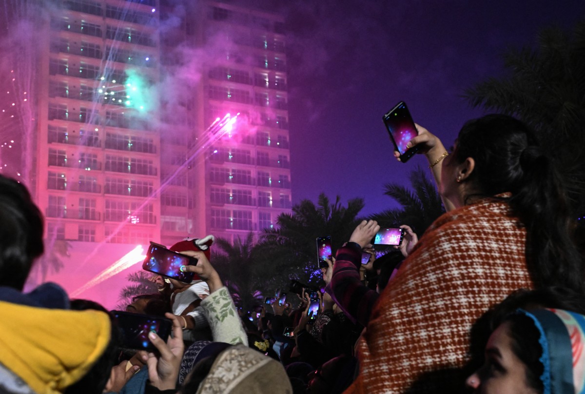 <p>یکم جنوری 2026 کو لاہور میں لوگ نئے سال کی تقریبات کے دوران آتش بازی دیکھ رہے ہیں (عارف علی / اے ایف پی)</p>