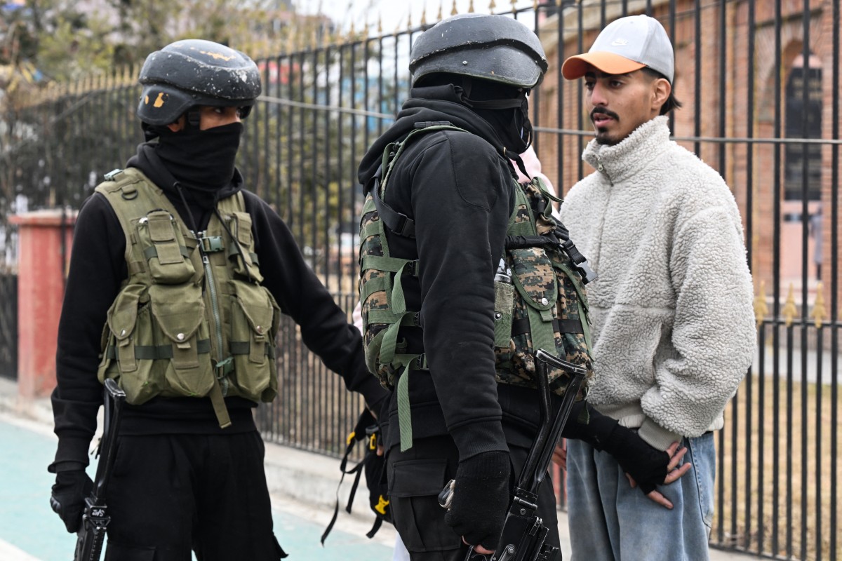 <p class="rteright">جموں و کشمیر پولیس کے سپیشل آپریشنز گروپ کے اہلکار سری نگر میں 22جنوری 2026 کو انڈیا کے یومِ جمہوریہ سے قبل سکیورٹی سخت کیے جانے کے دوران ایک سڑک پر پیدل چلنے والے شخص کی تلاشی لیتے ہوئے (توصیف مصطفیٰ / اے ایف پی)</p>